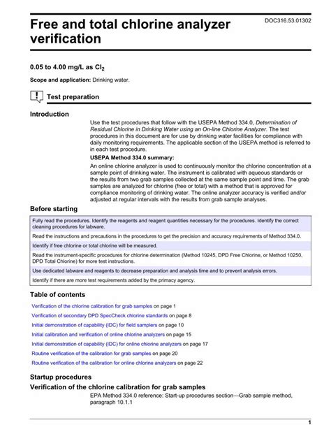 Read Online Free And Total Chlorine Analyzer Verification PDF Doc